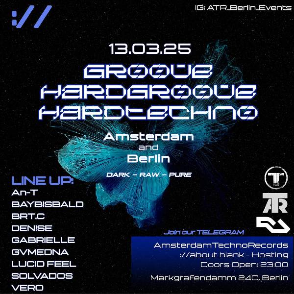 Get ready for our next nightrave on Friday 13 March in ://about blank, where the spirit of the underground sounds of Amsterdam collide with the heart of Berlin! We focus on RAVES within the combination of these two TECHNO Capitals. This edition promises again to be a fusion of hypnotic groove, hardgroove and hardtechno on 2 floors + one of the coolest chill-out gardens of Berlin. We always showcasing an inclusive line-up with top artists from Amsterdam and Berlin combined. Come and experience our vision of Techno.