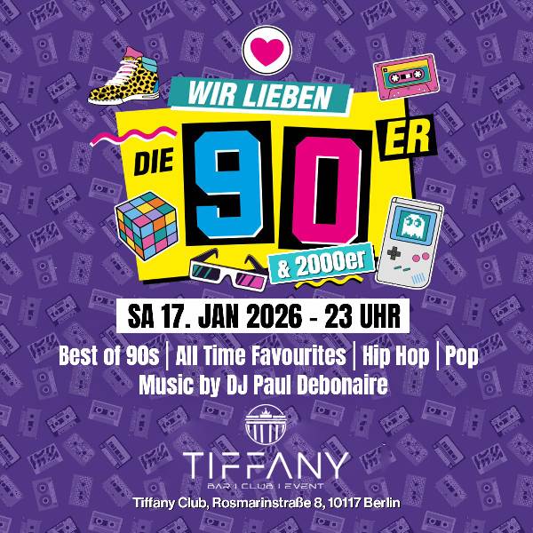Die 90er & 2000er! Was für Jahrzehnte! Die größten 90er & 2000er Hits findet ihr am Samstag den 17. Januar 2026 bei der Wir lieben die 90er & 2000er Party im TIFFANY CLUB.